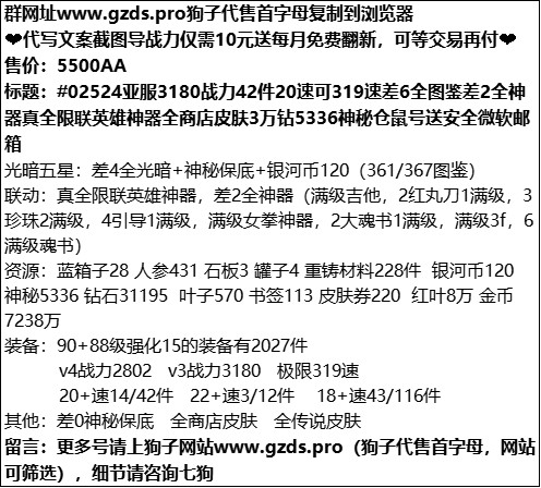 官方交易15群①949485999国服交易群810320079