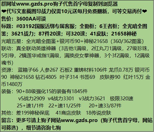 官方交易15群①949485999国服交易群810320079