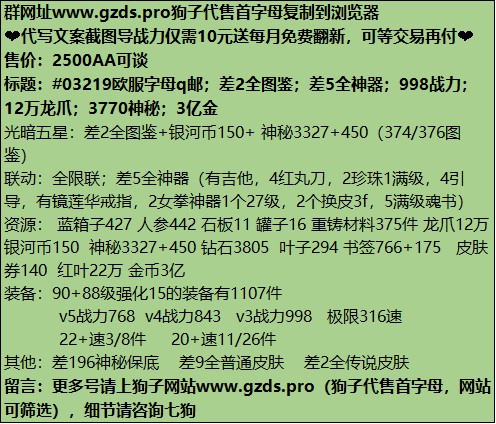 官方交易15群①949485999国服交易群810320079