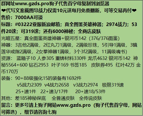 【第七史诗】#03222亚服新浪邮箱;真全图鉴英雄神器;2974战力;53件20速;可319速;还有6000神秘;全商店皮肤